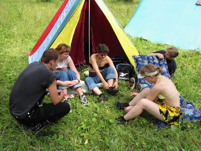 Расстановка палаток и надувка матрасов
