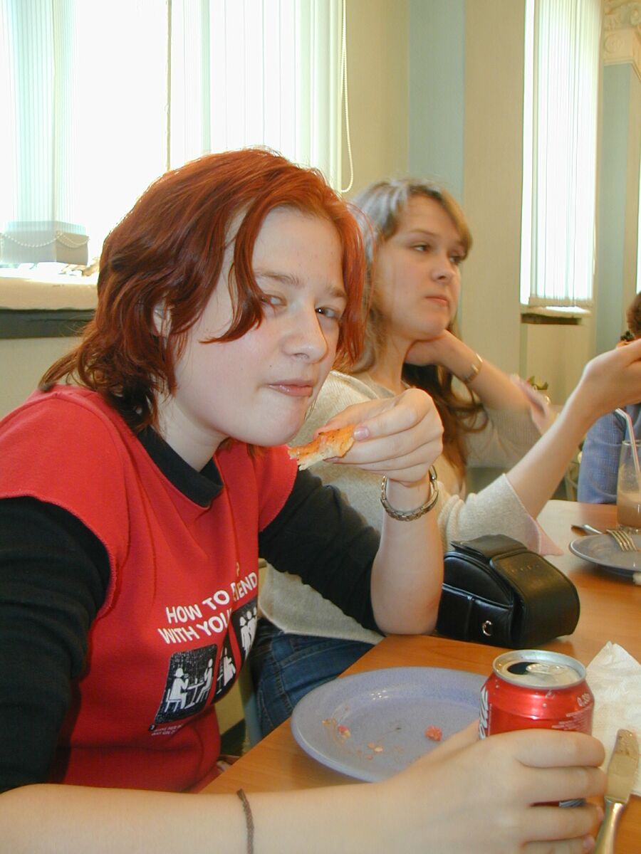 Девушки жуют.