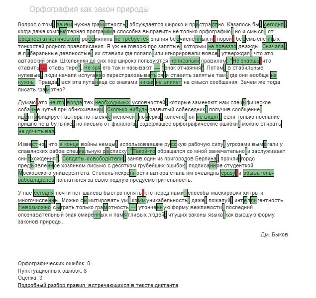 Дабы не спойлерить ответы - вдруг кто захочет сам пройти - скриншот моего диктанта даю не картинкой, а ссылкой на картинку.