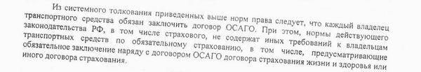 — Мой клиент сообщил, что у него подошло время оформления ОСАГО и он побывал в двух страховых компаниях. Там ему и сообщили о том, что полис отдельно не продается, а идет только в комплекте со страхованием жизни и здоровья.