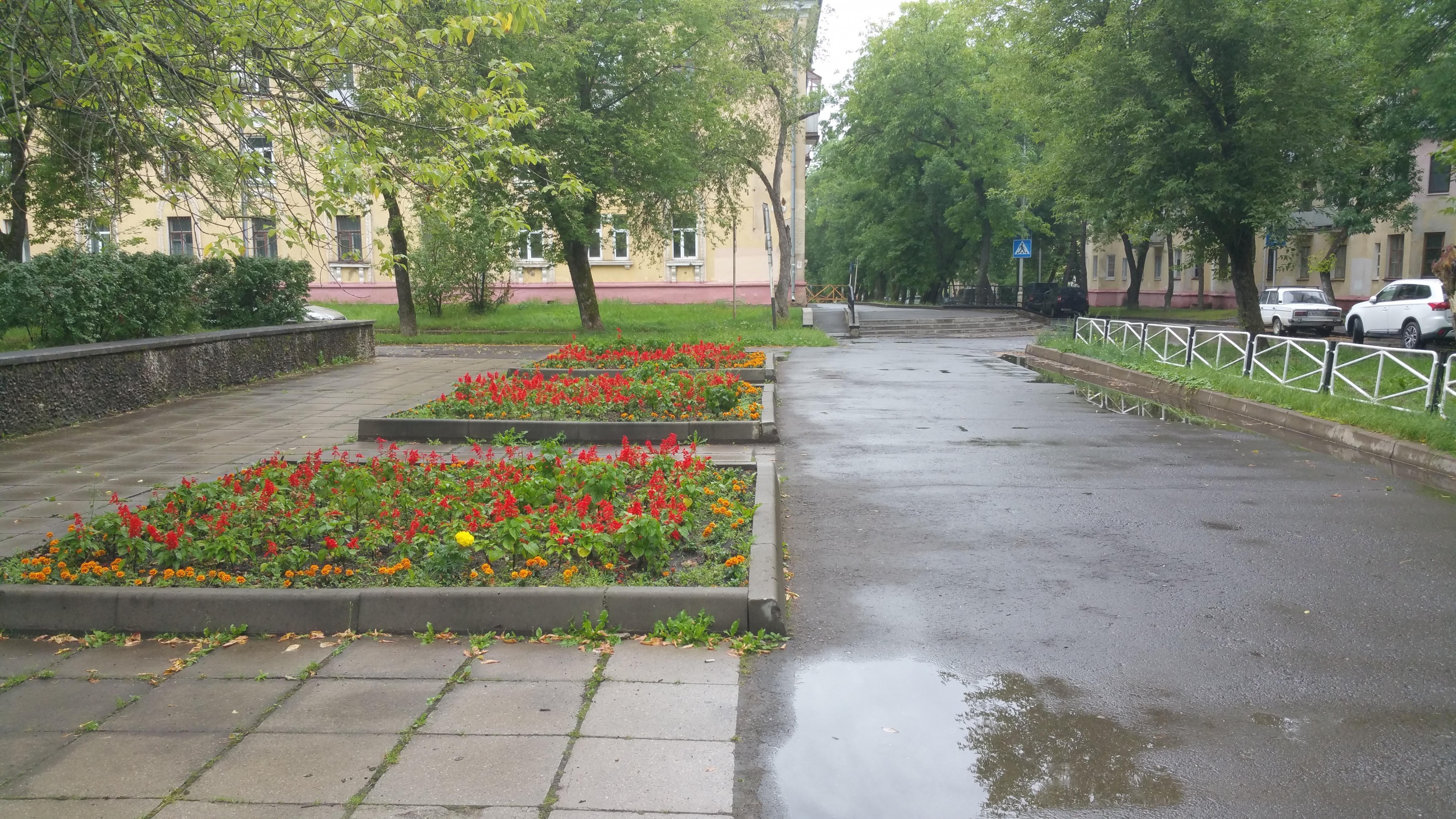 Ну что ж, клумбы — это, конечно, хорошо. Красиво, ничего не скажешь. Однако пришла пора ложки дёгтя — если посмотреть немного шире, то по той же улице Духова мы видим уже несколько иную картину: