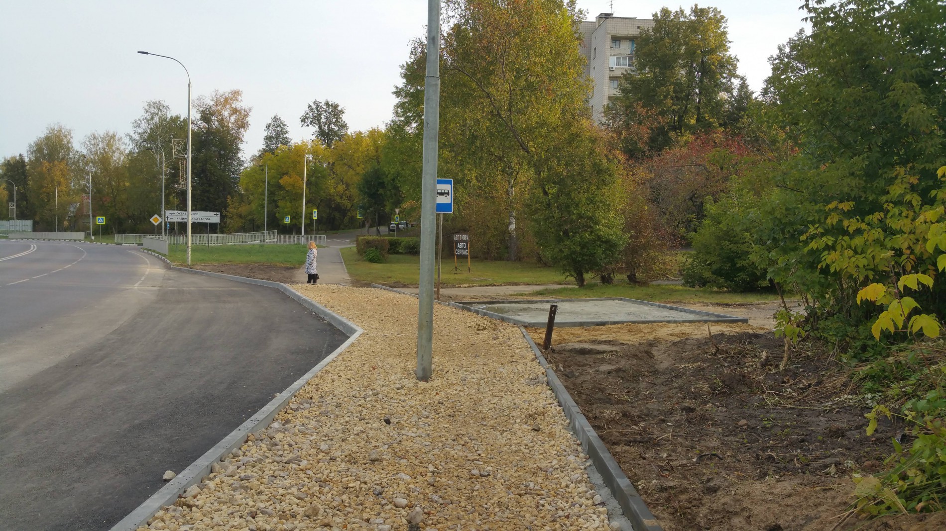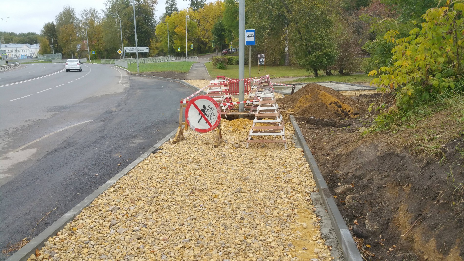 Понятно, что скоро только кошки родятся, поэтому прошло два с половиной года, наступил сентябрь 2020-го, и вот наконец начали строить остановку. Сомнения в том, что проектировщики «учли существующие отметки уровня дорожного покрытия»