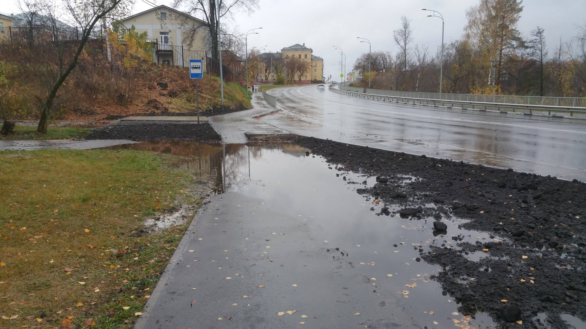 Осуществили ли в ходе этих работ «конструктивные решения, обеспечивающие водоотвод»? Октябрь выдался сухим, но вот настал торжественный момент, который позволил это проверить. То есть прошёл дождик: