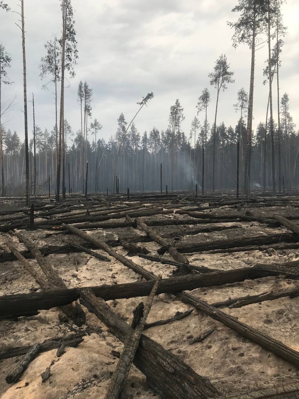 На востоке борьба продолжается. Двух крупных очагов больше нет, остался один, самый большой, который и слизнул посёлок Стеклянный, — он сейчас распространяется на юг и запад, то есть в сторону Сарова и основного лесного массива заповедника.