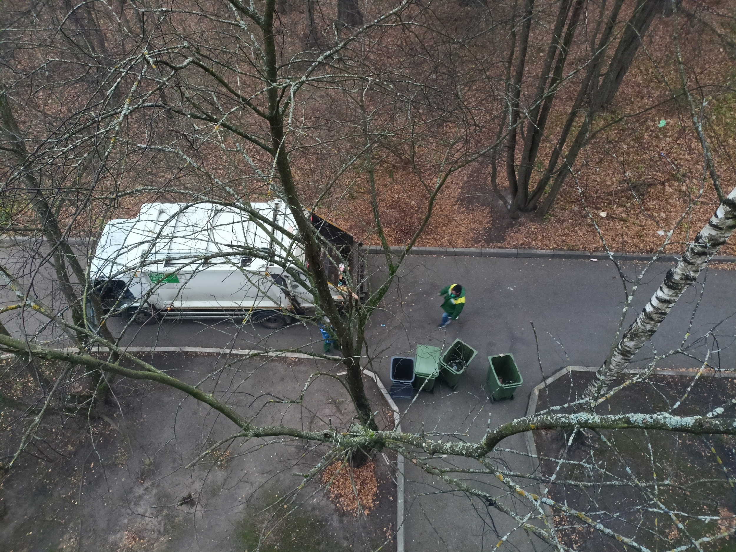 Сегодня утром я со своего балкона мусоровоз действительно увидел — как минимум на улице Академика Харитона процесс пошел. Вроде бы все ничего, но возникает очевидный вопрос: куда делся мусор, который жители набросали в мусоропровод за вчерашние сутки? Правильно: он скопился в мусоропроводе, закрытом заслонкой.