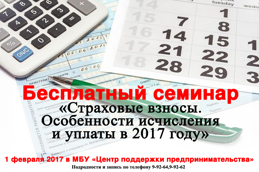 Не стоит опасаться нововведений. С целью разъяснения изменений в законодательстве 01 февраля 2017 года МБУ «Центр поддержки предпринимательства» совместно с Налоговой Инспекцией, Пенсионным Фондом и Фондом Социального Страхования проводит бесплатный семинар для работодателей «Страховые взносы. Особенности исчисления и уплаты в 2017 году».