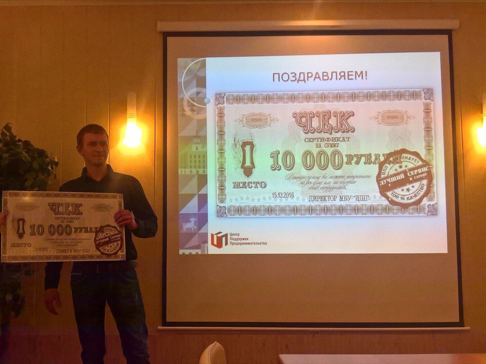Победителем конкурса «Лучший сервис в Сарове» стала автомойка «Колесо-С», ул. Зернова, 20. Центр поддержки предпринимательства торжественно поздравил директора автомойки и вручил сертификат на сумму 10.000 рублей. Данную сумму можно будет потратить на рекламу или на обучение своего персонала мастерству в сфере работы с клиентами.