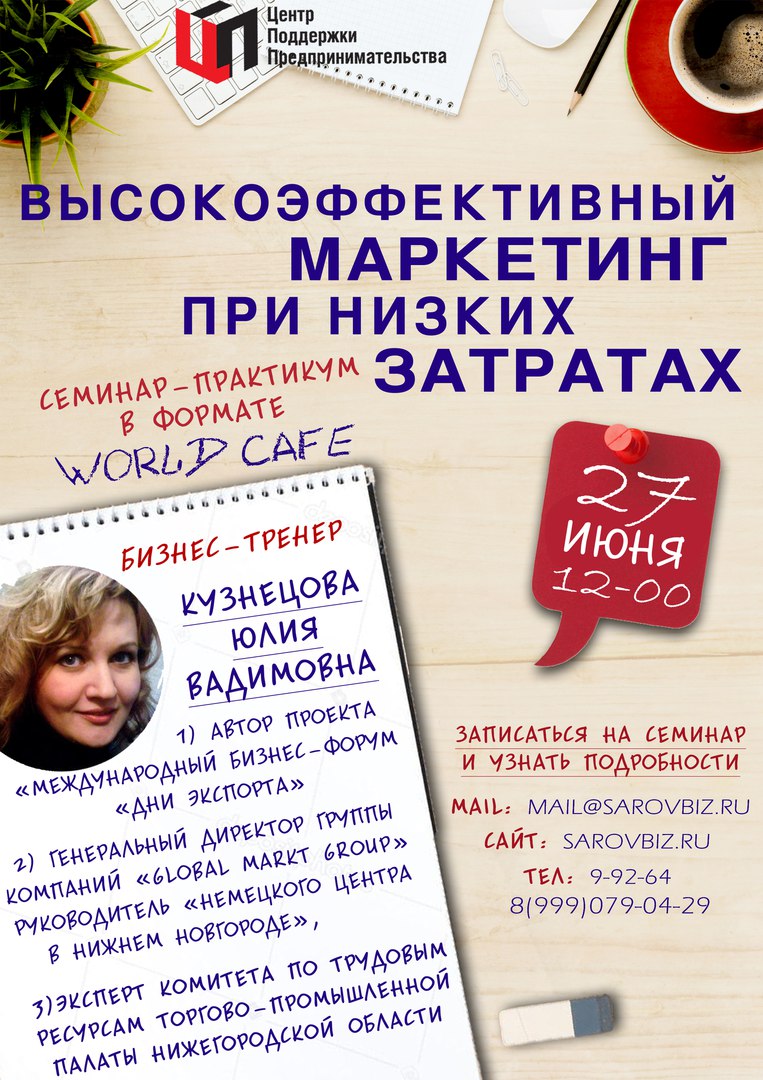 27 июня в ЦПП пройдет семинар-интенсив «Высокоэффективный маркетинг при низких затратах»