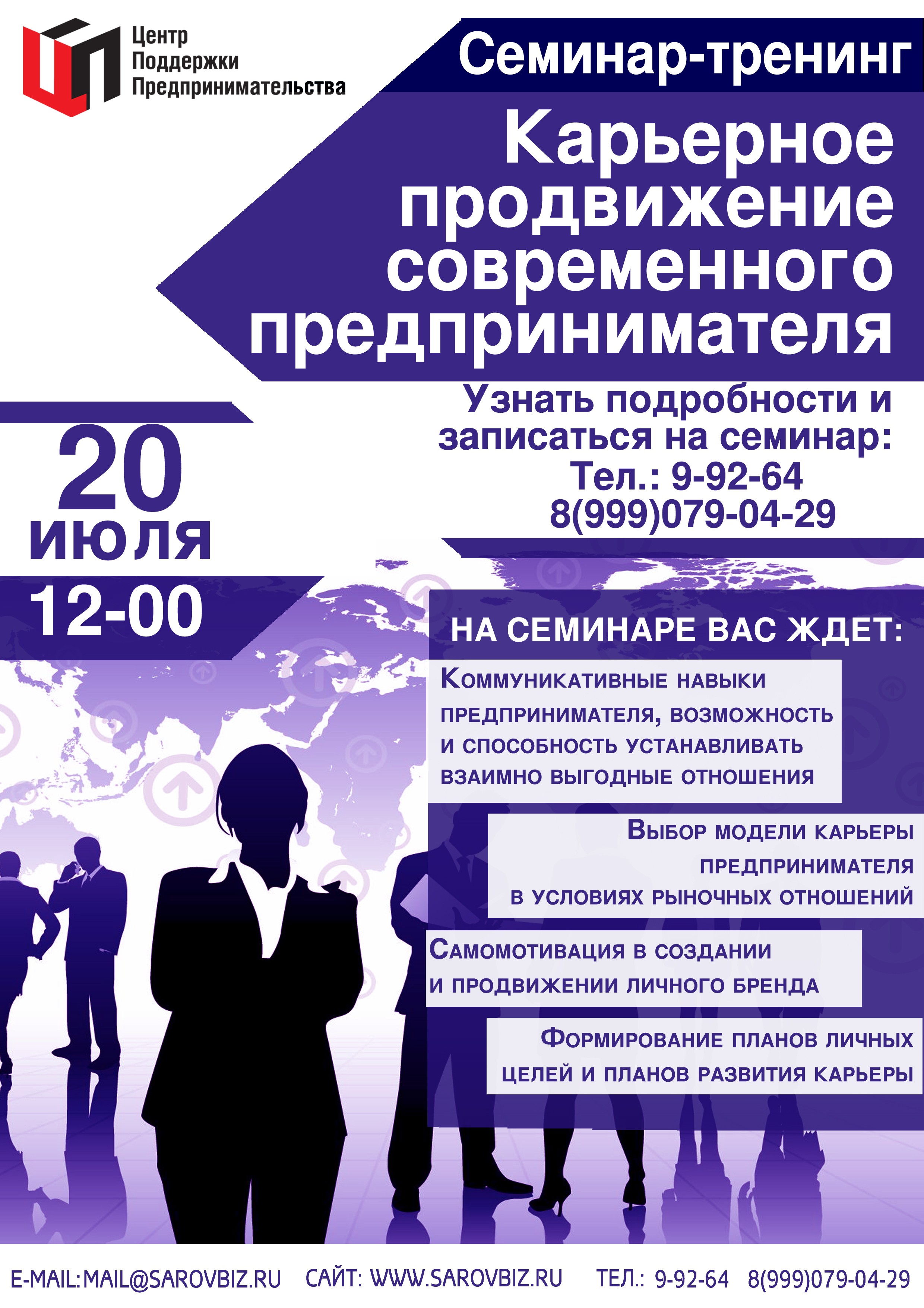 20 ИЮЛЯ В ЦЕНТРЕ ПОДДЕРЖКИ ПРЕДПРИНИМАТЕЛЬСТВА ПРОЙДЕТ СЕМИНАР - ТРЕНИНГ «КАРЬЕРНОЕ ПРОДВИЖЕНИЕ СОВРЕМЕННОГО ПРЕДПРИНИМАТЕЛЯ. ФОРМИРОВАНИЕ И ПРОДВИЖЕНИЕ ЛИЧНОГО БРЕНДА»