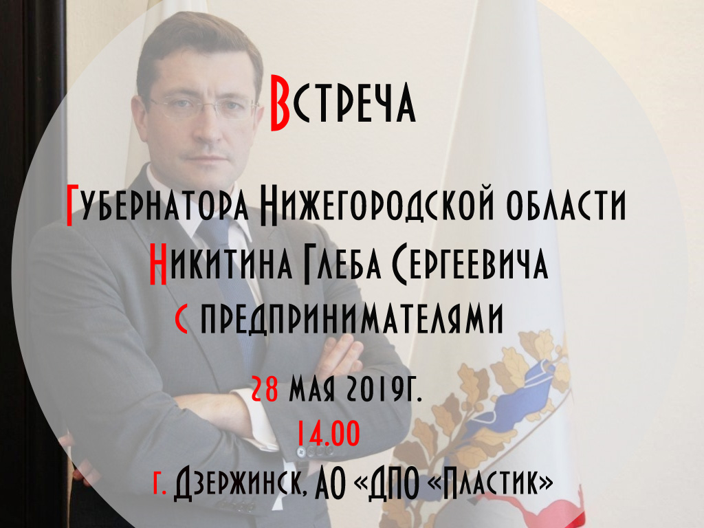 28 мая в 14:00 в г. Дзержинск состоится встреча Губернатора Нижегородской области Г. С. Никитина с предпринимателями