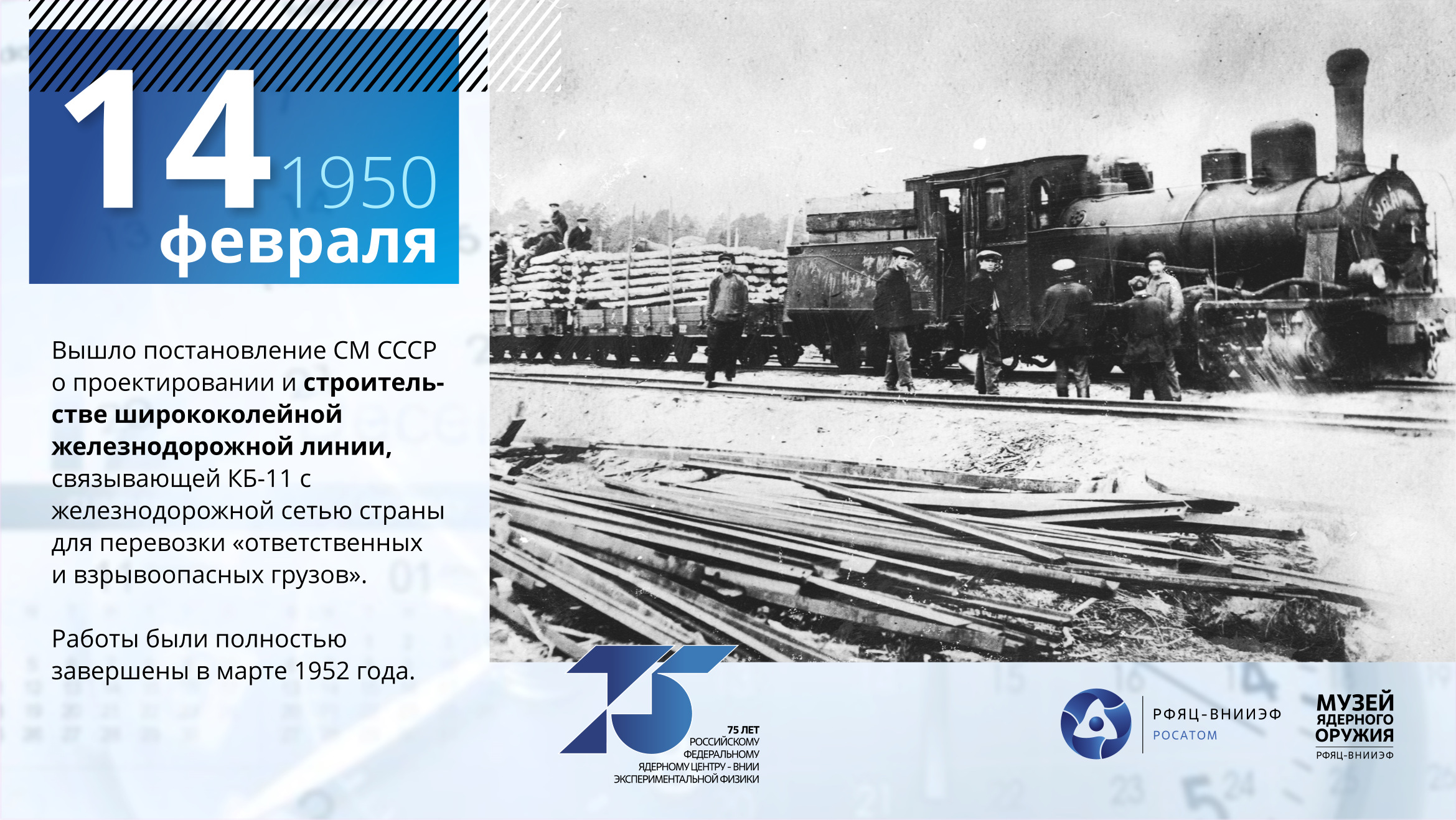 На первый пробный проезд в Шатки прибыло все начальство во главе с начальником КБ-11 П.М. Зерновым. Паровоз украсили портретом Сталина, флагами и транспарантом «Сдаем дорогу!». Машинист паровоза Г. М. Романенко вспоминал: «Взяли с собой большой состав — 900 тонн. В середине разместилась теплушка с начальством. Доехали мы до 17-го километра и встали — паровоз буксует, не тянет. Состав несколько раз осаживали и разгоняли — ничего не получается. Отцепили половину состава, только после этого проскочили злополучное место». Не получилось в тот день красиво открыть движение по новой линии. Открыли железнодорожный путь без оркестра в 1952 году.