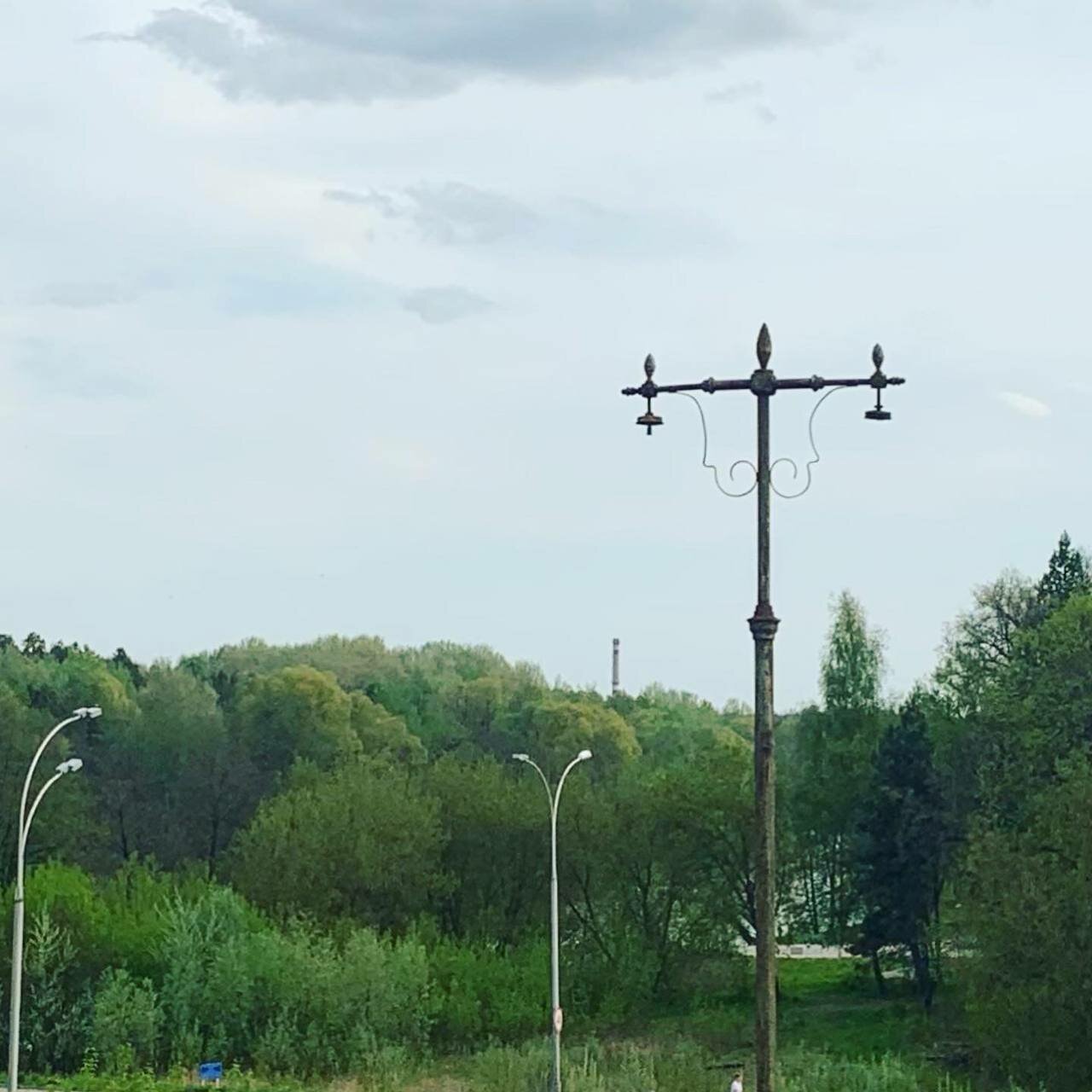 Прогулявшись прошлым летом по больничному городку в поисках построек начала прошлого века, наткнулся на другой артефакт, не такой древний, но уже раритетный. На склоне перед терапией сохранился фонарный столб 1950-х годов.