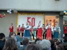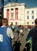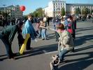 В общем, чего. С утреца, рассказывают, прошла аж целая демонстрация, как в старые добрые времена. Понятное дело, я её стратежно проспал. Ещё, говорят, прошли различные децкие выступления и прочие интересные вещи. И вот в какой-то момент я всё же продрал глаза и заявился на площадь. Народу там тусовалось — примерно как в известной поговорке «в лесу было накурено». Шла бойкая торговля готовыми к употреблению продуктами питания, игрушками, шариками. За зданием ЦКиД девушки разрисовывали физиономии желающих краской (надеюсь, несмывающейся), около администрации дети прыгали на батутах, с другой стороны — скакали в мешках, тянули канат и проделывали другие хитрые трюки.