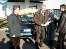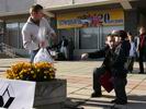 Собственно говоря, сегодняшнее мероприятие было сдвоенным: заодно прошел заключательный этап акции «Автомобиль за 20 литров» (совместное мероприятие «Новотек» и «Саров-Лада»). Граждане, заправлявшиеся с июля месяца на заправках на ул. Силкина и возле мебельного магазина (не менее чем по 20 литров), бросами свои чеки в коробочку, чтобы потом специально обученные детишки вытаскивали случайные чеки, которые тут же и объявлялись выигравшими. Еженедельно разыгрывались бесплатные двадцатилитровые заправки, а сегодня мальчик тащил из большого мешка чек на главный приз: автомобиль ВАЗ-2114. Эта машина с табличкой «ПРИЗ» с лета стояла на силкинской автозаправке, обвязанная ленточками, и успела многим примелькаться.