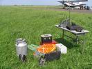 В полпервого приезжаем на аэродром: никого нет. Позвонил, уточнил, что оргкомитет только выехал. Через полчаса подъезжает газель, выгружают стол, рацию и прочее хозяйство. Ближе к полвторому начинают заниматься самолётом: снимают чехлы, всё проверяют, заправляют. Погода пока нелётная и непрыжковая, на небе тучи, периодически капает мелкий дождь, сильный ветер, всех отпускают до 17:00.