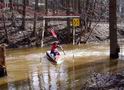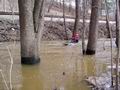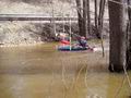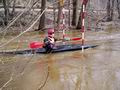 Сегодня состоялись соревнования по слалому на каяках по Саровке, внезапно получившей большое количество воды вследствие весны. Народу, пришедшему на пешеходную дорожку за хлебозаводом поглазеть на заплывы, была явлена весьма бурливая речка с трассой: двенадцатью воротами, подвешенными над водой на протяжении нескольких сот метров.