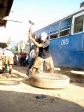 Туда-то я поехал, и хоть путь был недалекий, оказалось, что большая его часть проходит по горам, да еще где-то в жопе мира у автобуса пробило колесо, и местный шиномонтажник кувалдой и всякими другими железками менял резину на еще более изношенную. Ближе к вечеру мы доплюхали, но тут внезапно выяснилось, что при упоминании автобуса во Вьетнам все как-то странно на меня косились, оказалось, что это всего лишь мои фантазии, автобус только один, назад во Вьентьян. Так глупо и беспомощно я себя еще не чувствовал. Все продумать и не раз проверить всю поступающую информацию, а тут так облажаться. Весь маршрут у меня был расписан по дням, и зазоров вроде бы не оставалось, а здесь я был вынужден потерять целый день, и хорошо, если один. Да еще ко всему, следующий автобус в столицу должен был идти назавтра, ближе к обеду.