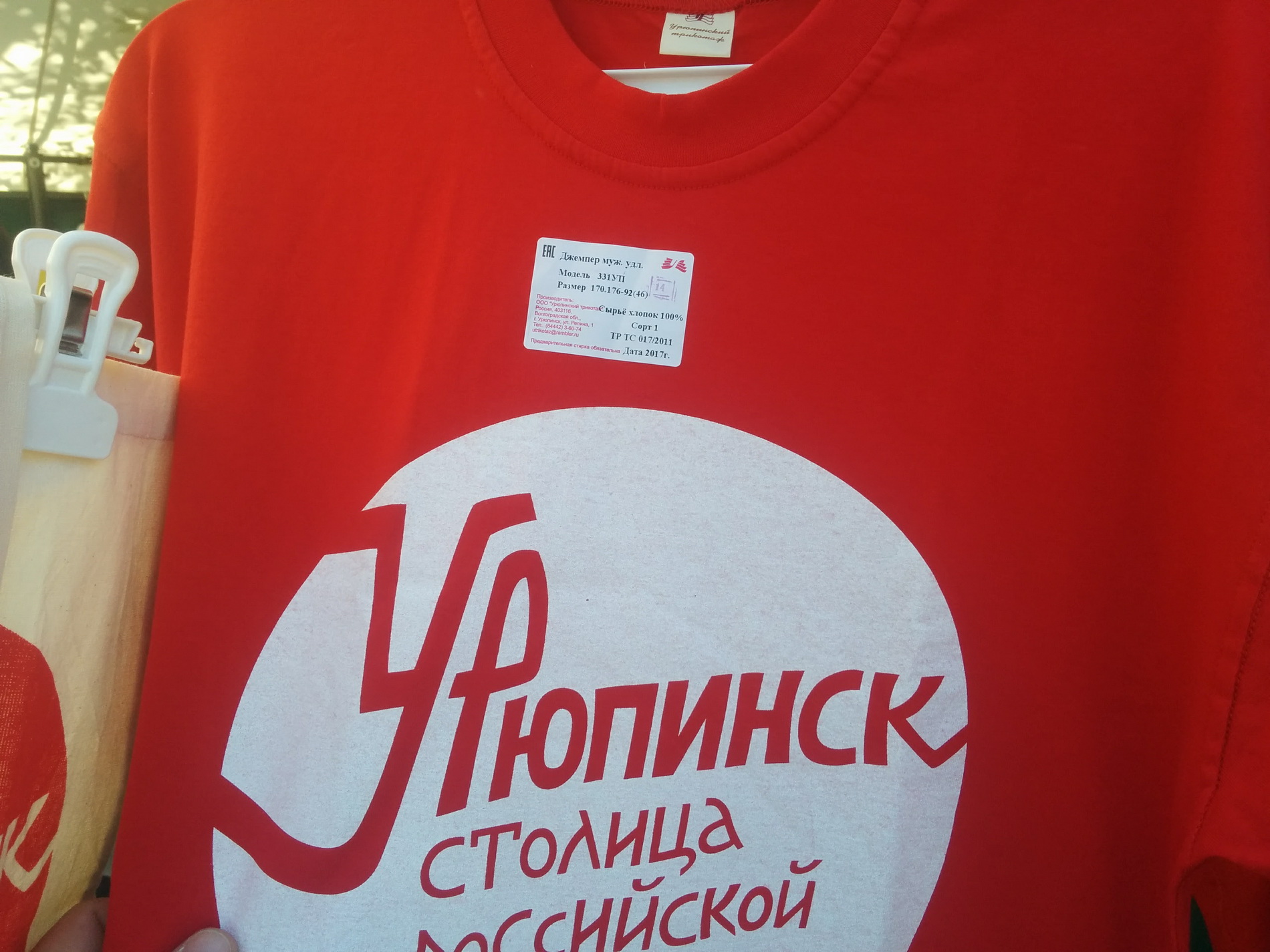 Внутри фабрика, кстати говоря, тоже напичкана артефактами советской эпохи. По советской же традиции, шьют всякое из весьма приличного трикотажа. Лично смотрел, щупал, пытался посчитать количество лекал для разных матерчатых изделий. Делают на совесть, рекомендую. Сам, конечно, урвал себе и жене футболки с брендом города. Их при мне, как горячие пирожки, испекли и в подарочную упаковку завернули.