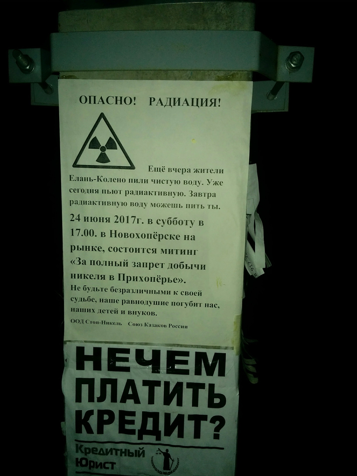 Этого урюпинцы и боятся. Дело в том, что несколько лет назад Уральская горно-металлургическая компания решила разрабатывать тут никель, а это, если вкратце, кабздец Хопру. Местные бьются уже который год, но пока неясно чем закончится. Может, инвестору даже и не рентабельно будет. Тем не менее, как утверждают урюпинцы, ответные шаги УГМТ приводят к посадке в тюрьмы отдельных активистов, штрафы, возлагаемые на город за неконтролируемые свалки, и прочее лоббирование.