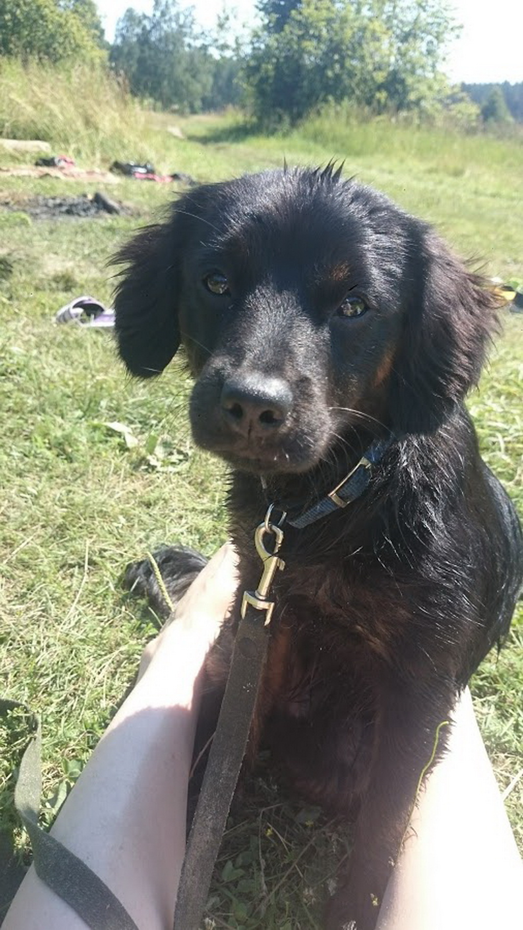 Ну у нас, конечно, плач и вой, печать объявлений с цветным фото, репосты в социальных сетях, вот это вот все. Но не успела поисковая экспедиция выйти из подъезда как этот недотепа нарисовался рядом. Однако, переживательно! Пришили к ошейнику бирку с телефоном.