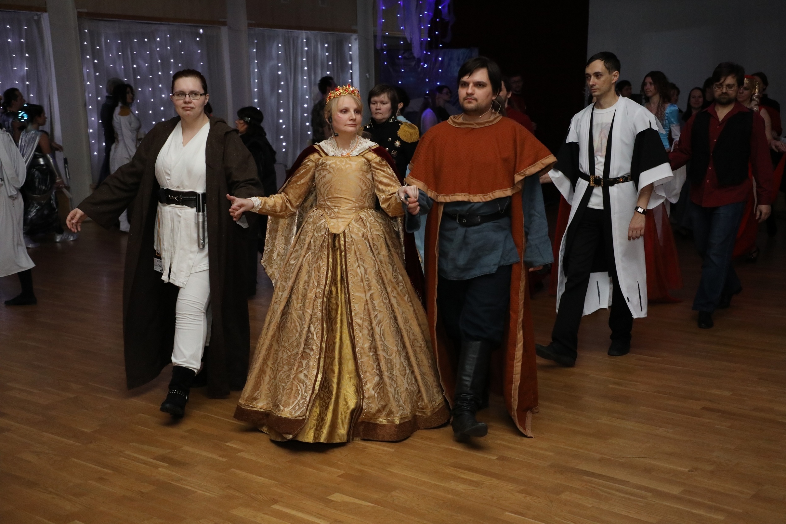 Дальше — «Бал Новой Республики», будь он неладен. Полный провал, к сожалению. Сюжет, костюмы ведущих, работа звукопёров, схемы танцев — всё слито. Контраданс «Веселый парень» наблюдал со стороны и веселился от души, глядя на хаос в обеих колоннах, но потом пошел на испанский вальс и там сам схлопотал по полной. Ушел в расстроенных чувствах в итоге на ярмарку, крафтить пластиковое кольчужное полотно, чем и занимался до ужина.