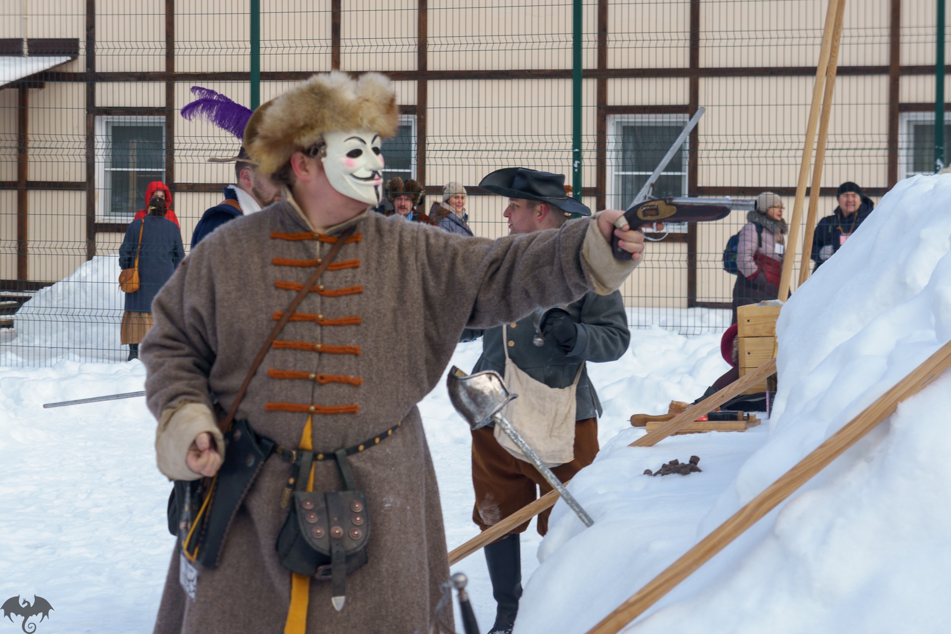 Поспав час после обеда, добрел до викторины про семнадцатый век. ВНЕЗАПНО проявил изрядную эрудицию; когда команда оппонентов была уничтожена с разгромным счетом, организаторы предложили сыграть внутри команды финальную часть. Последним вопросом стало назвать город в Прибалтике, где в семнадцатом веке польская гусария наголову разгромила шведов, а во время Великой Отечественной Войны свершилось одно из гнуснейших преступлений фашистов. Догадка про Саласпилс щелкнула сразу, а тут еще и сокомандница начала тихо напевать про детский пионерский лагерь. В общем, я получил суконную шапку с песцовой опушкой и чарку от пана Лисовского, а мой соперник — принудительное купание в сугробе.