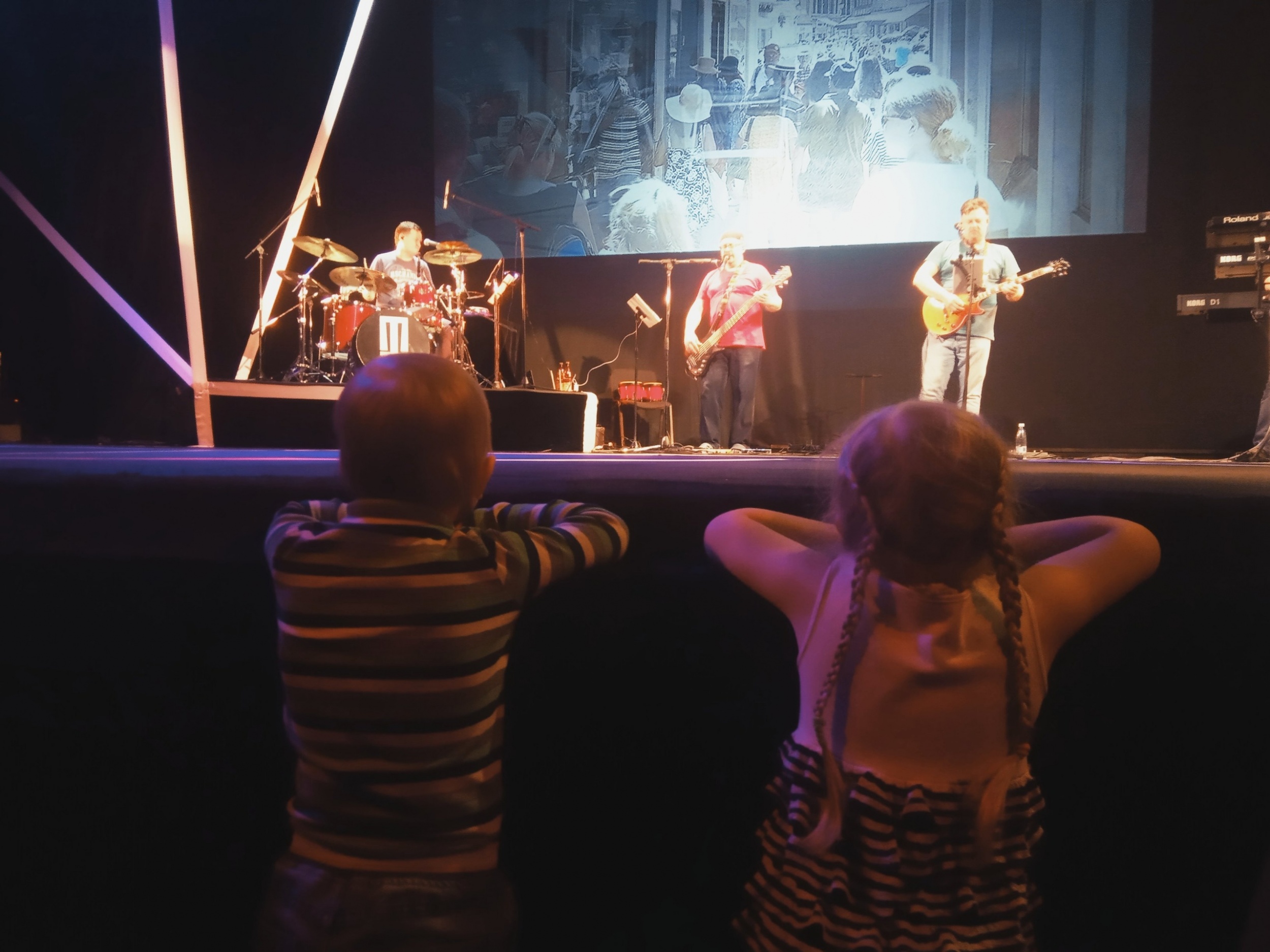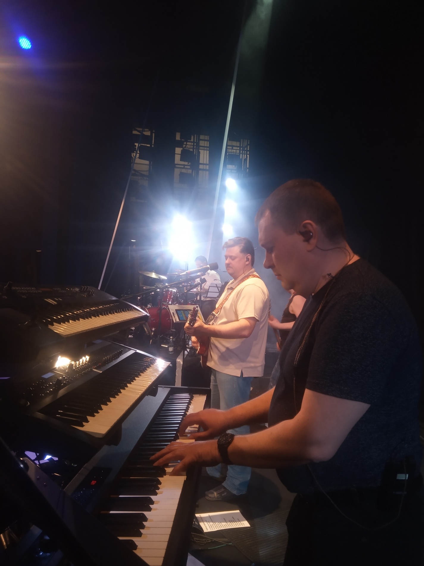 Готовятся к выходу и остальные участники группы: Сергей Коробов — барабаны, вокал, Станислав Курчев — гитара, вокал, Дмитрий Коновалов — клавиши.