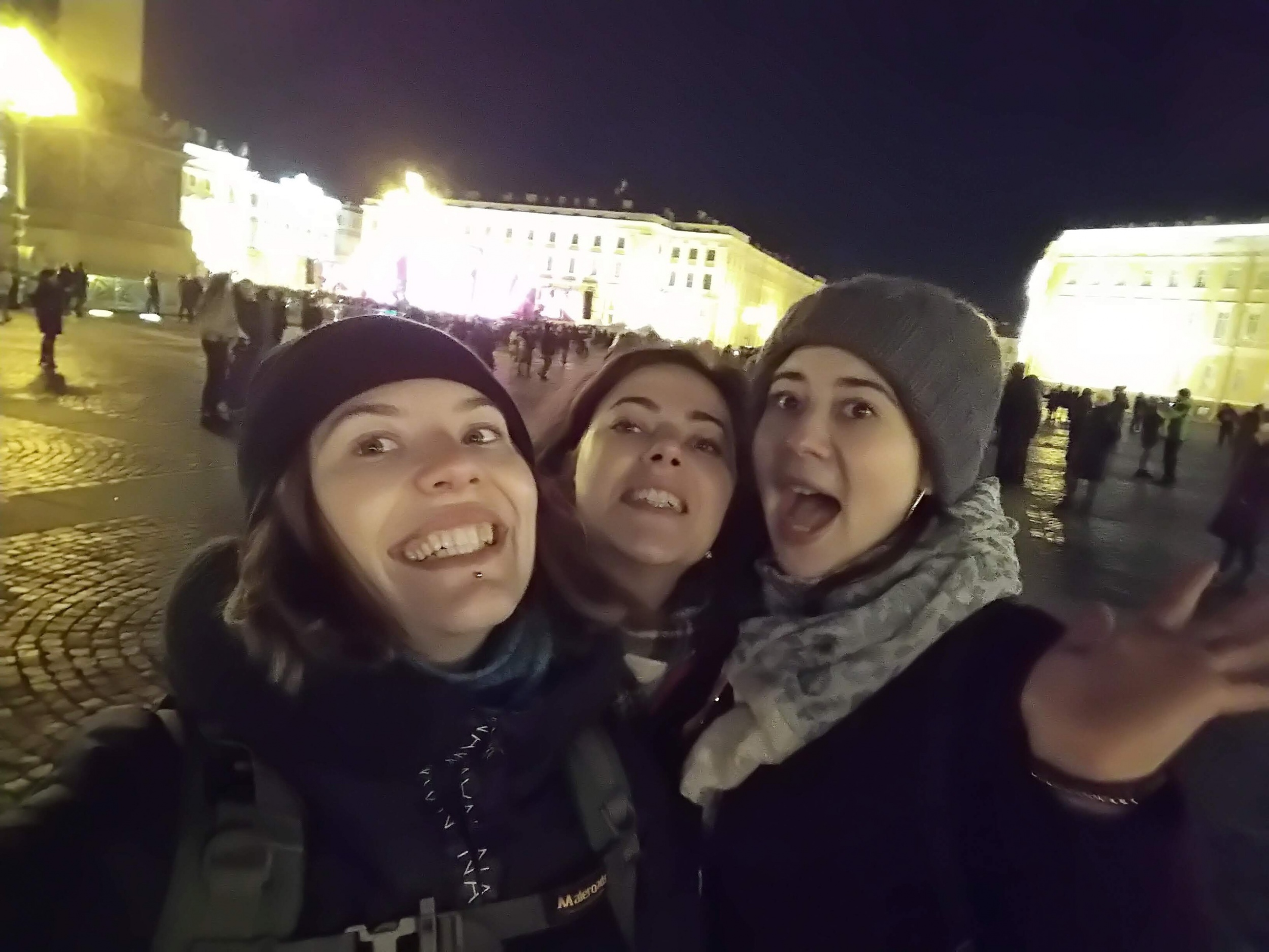 И спустя несколько часов, когда мы ехали с подругами из бара на Дворцовую площадь, распевая новогодние песни на весь вагон метро (полвагона подпевало, кстати!), я почти поверила в карму. Потому что петь в питерском метро, смотреть на салют на Дворцовой вместе с половиной Питера, ходить на чужих каблуках через весь Лиговский и всей кожей ощущать новогоднюю атмосферу любимого города — это то, за что стоило заплатить.