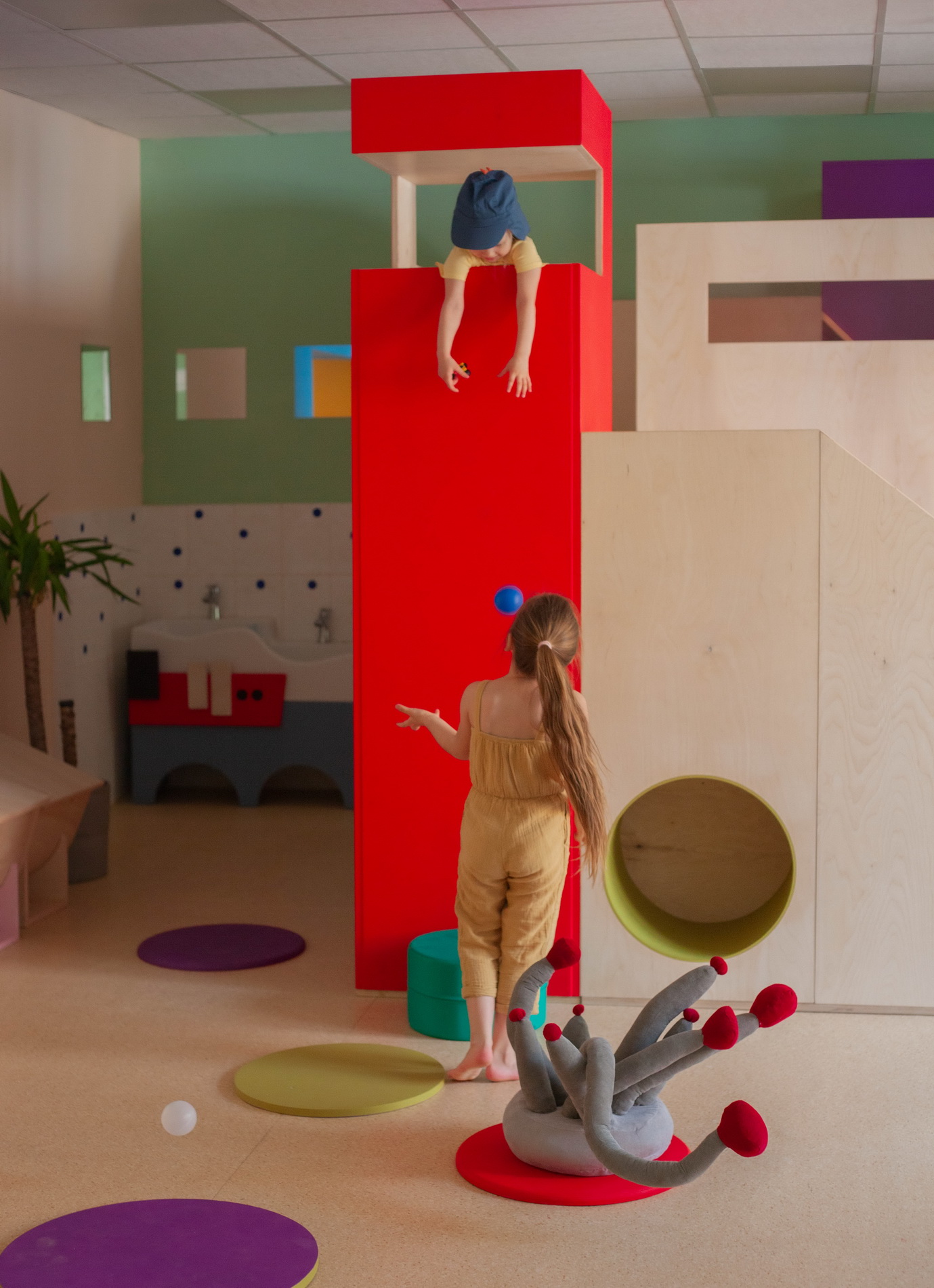 Все началось с инициативы заведующей этим детским садом Майи Васильевой сделать игровое пространство не так, как все привыкли видеть. И наше видение того, как может быть устроено детское досуговое пространство, с отсылкой к европейскому опыту, было поддержано ею. И, да, сделать это, даже с большим энтузиазмом и поддержкой, было очень непросто.