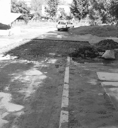Проход, где расположена присыпанная щебенкой яма, довольно оживленный: ведет к садику, школе, этим же путем ВНИИЭФовцы направляются к 21 площадке. Яма хоть и присыпана, а ногу в ней сломать по темному времени — раз плюнуть. А после дождя грязь из ямы покрывает асфальт вокруг ровным слоем — пройти можно лишь в резиновых сапогах. Как рассказала одна из жительниц многострадального двора, обращались они и в ЖРЭП, и в паросиловой цех. Но проблема до сих пор не решена.