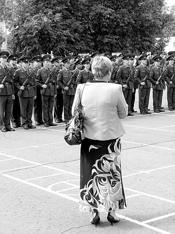 День выдался душный и жаркий, ребятам в полном обмундировании нелегко было стоять на солнцепеке, но первое боевое крещение жарой все выдержали с честью. Поодаль толпились родственники: мамы прижимали к глазам платочки, отцы при виде проходящих офицеров расправляли плечи, сестры и невесты восторженно глядели на стройные ряды вчерашних мальчишек, гордо прижимавших к груди настоящее боевое оружие.