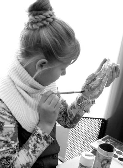 И пусть юным творцам всего по шесть-семь лет, они уже сейчас проявляют художественное чутье и собственную интерпретацию идеи, заданной автором и ведущей мастер-класса Ольгой Валентиновной. Она предложила ребятам так разукрасить приготовленный заранее гипсовый эскиз, чтобы у каждого получился свой неповторимый полосатый друг.