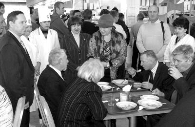 — Каждый день мы кормим около девятисот человек, бывает и больше, в том числе триста пятьдесят получают спецпитание, — рассказала комиссии инженер-технолог Т.Шмакова. — Стараемся разнообразить стол, регулярно проводим дни национальной кухни. Раздача открывается в половине одиннадцатого утра, закрывается через три часа. Конечно, иногда людям приходится стоять в очереди, но мы стараемся обслуживать быстро и качественно, голодным от нас еще никто не ушел.