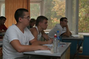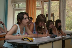 Лиза Фотина: — Это замечательная подготовка к поступлению! Здесь дают хорошую базу, в школе мы такие задачи не рассматриваем. Я уже могу представить, что будут требовать от меня в институте. А то, что не купаемся в бассейне, как остальные… Так в классе даже прохладнее, чем на улице! Вы посмотрите, в бассейн тоже не все пошли: многие просто сидят по корпусам. А мы хоть полезным делом заняты!