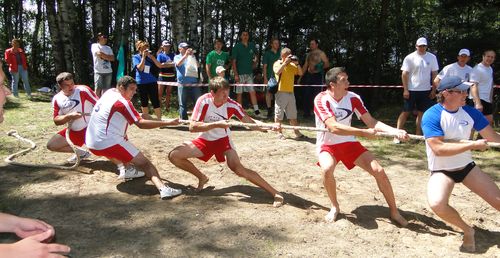 И наша команда доказала, что свой девиз: «У нас в крови адреналин, наш ВНИИЭФ непобедим!» они выбрали не просто так. Первая победа саровской сборной была завоевана сразу после торжественного открытия, когда началась так называемая «Гонка дружбы». Затем они только укрепляли свои позиции: первое место в перетягивании каната, женском волейболе и стритболе, серебро в настольном теннисе и шахматах. Третья ступень пьедестала — в бадминтоне и мини-футболе…