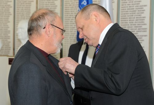 Поздравил и наградил работников ВНИИЭФ первый заместитель генерального директора Госкорпорации «Росатом» Иван Каменских. Поскольку Василий Устиненко по состоянию здоровья не смог присутствовать на торжественной церемонии, Иван Михайлович вместе с первым зам. директора ВНИИЭФ — директором ИТМФ Вячеславом Соловьевым вручили награду победителю в домашней обстановке.