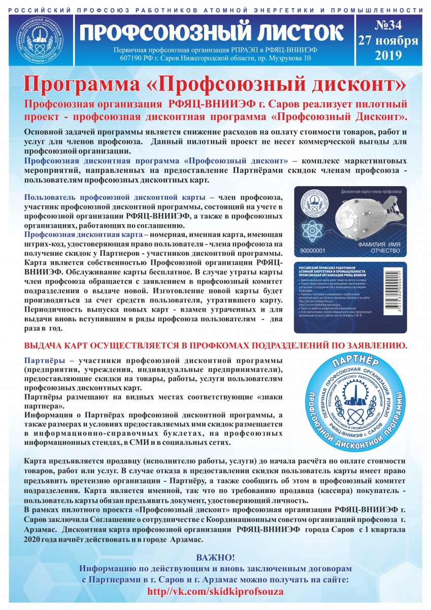 Заметки в разделе «Новости профсоюза РФЯЦ-ВНИИЭФ» за ноябрь 2019 года: