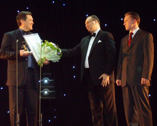 Первыми на сцену поднялись Валерий Димитров, глава администрации Сарова, и Борис Еремин, главный редактор журнала «Советник», чтобы вручить статуэтку лучника победителю в номинации «Лучшая работа по теории» Андрею Ульяновскому, автору книги «Стратегии корпоративного имиджа и управление лояльностью».