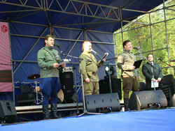 С пяти часов на большой сцене на проспекте Музрукова в режиме нон-стоп шли концерты. Песни военных лет исполняли нижегородские актеры театра «Zоопарк» и группа «ТриА», передавшие эстафету Нижегородскому государственному русскому народному оркестру и его солистам Василию Овсянникову, Ульяне Старковой и Светлане Кузнецовой. А после них на сцену вышла Пелагея, очарованная Саровом («Я позавидовала людям, живущим в этом замечательном городе»), и очаровавшая зрителей своей манерой пения, экспрессией, проникновенностью и искренностью.