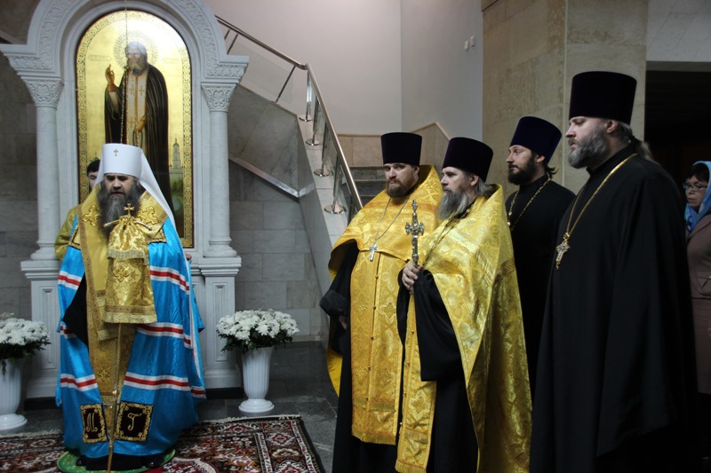 Киот с иконой преподобного Серафима Саровского — подарок Нижегородской епархии, установленный в холле здания городской администрации, 19 декабря освятил митрополит Нижегородский и Арзамасский Георгий. В своем слове, обращенном к пришедшим на чин освящения, владыка Георгий напомнил о главной заповеди Серафима Саровского — «Стяжи дух мирен и вокруг тебя спасутся многие».