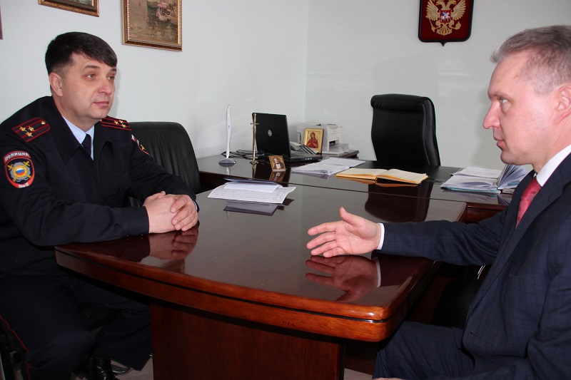 Глава администрации Валерий Димитров провел 19 февраля рабочую встречу с начальником межмуниципального управления МВД России по ЗАТО Саров полковником полиции Виктором Ивановым.
