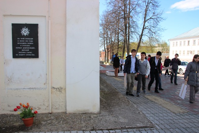 5 мая около дома 48 на проспекте Мира, в том месте, откуда уходили на фронт жители поселка (всего из Сарова и ближних деревень было призвано более тысячи человек), собрались семиклассники школы № 7 и десятиклассники гимназии № 2. После митинга они отпустили в небо связки белых шаров, напоминающих о погибших. Среди десятков миллионов советских людей, не доживших до Победы, есть 539 саровчан. И чьи-то лица обязательно будут 9 мая в строю «Бессмертного полка».