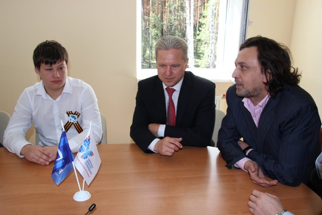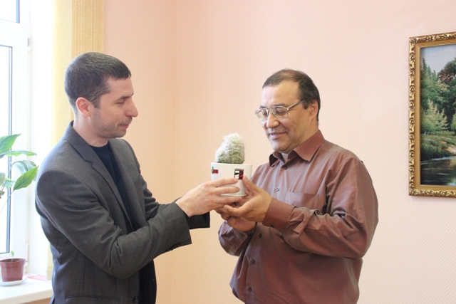 На встречу был приглашен генеральный директор ГК «Два Аякса» Артем Мочалов, имеющий непосредственное отношение к развитию эфирного радиовещания в городе. В честь 60-летия саровского телевещания он подарил Алексею Казакову, как совсем недавно