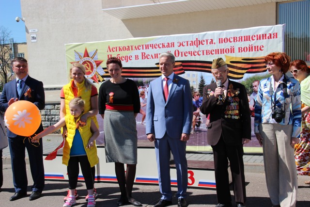 Один из обязательных элементов празднования 9 мая в Сарове — легкоатлетическая эстафета. В год 70-летия Великой Победы она проводилась в 67-й раз. Спортсменов приветствовали глава администрации Валерий Димитров и ветеран Великой Отечественной войны Василий Бублий. И пока Василий Андреевич говорил, его внучка — мастер спорта международного класса Анастасия Костерина, фотографировала деда, стоя на коленях. Еще одна выдающаяся саровская спортсменка Светлана Кулакова не только выступила на параде-открытии, но и вместе с дочерью пробежала свой этап. Девиз «Россия — страна номер один!» помогает Светлане выигрывать бои на ринге, этими словами она закончила и свою короткую речь перед участниками эстафеты.