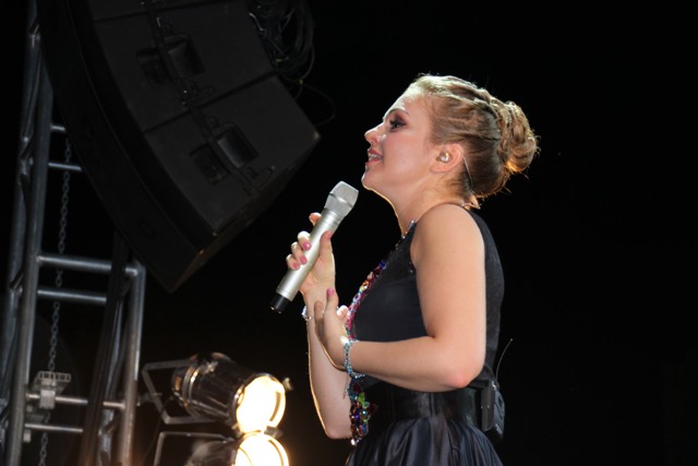 Когда стемнело, действие переместилось на сцену около театра. Народные песни в исполнении солистов ансамбля «Горница» сменили зарубежные композиции, которые представили воспитанники ансамбля «Зебра». А после того, как публика оценили по достоинству юных саровчан, на сцену вышла очаровательная, задорная Марина Девятова и ее шикарный шоу-балет «ЯR-Dance».