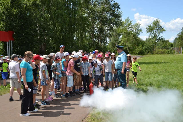 Также была проведена беседа-инструктаж на тему: «Правила пожарной безопасности в быту», «Правила пожарной безопасности в лесах», «Действия при пожаре». Дети с большим интересом попробовали практически поработать с огнетушителями, принимали активное участие в пожарной эстафете, с увлечением посмотрели фильм о «Пожарной безопасности», отвечали на вопросы пожарных. А персонал лагерей освежил свои знания вопросов пожарной безопасности.