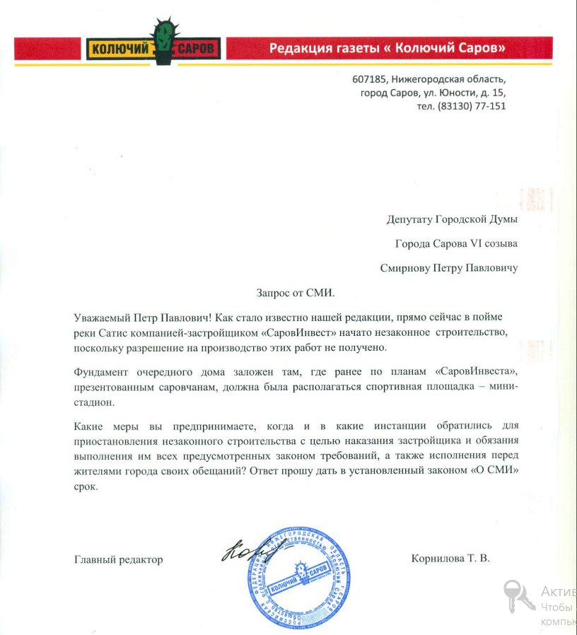 Учитывая тот факт, что застройщик, претендующий на землю у Атома, и застройщик, которому посвящен запрос от СМИ, один и тот же человек — Павел Харитонов, становится совсем непонятно, почему одни вопросы, связанные с «СаровИнвестом» очень интересны депутату, а другие не попадают в «очерченные границы округа».