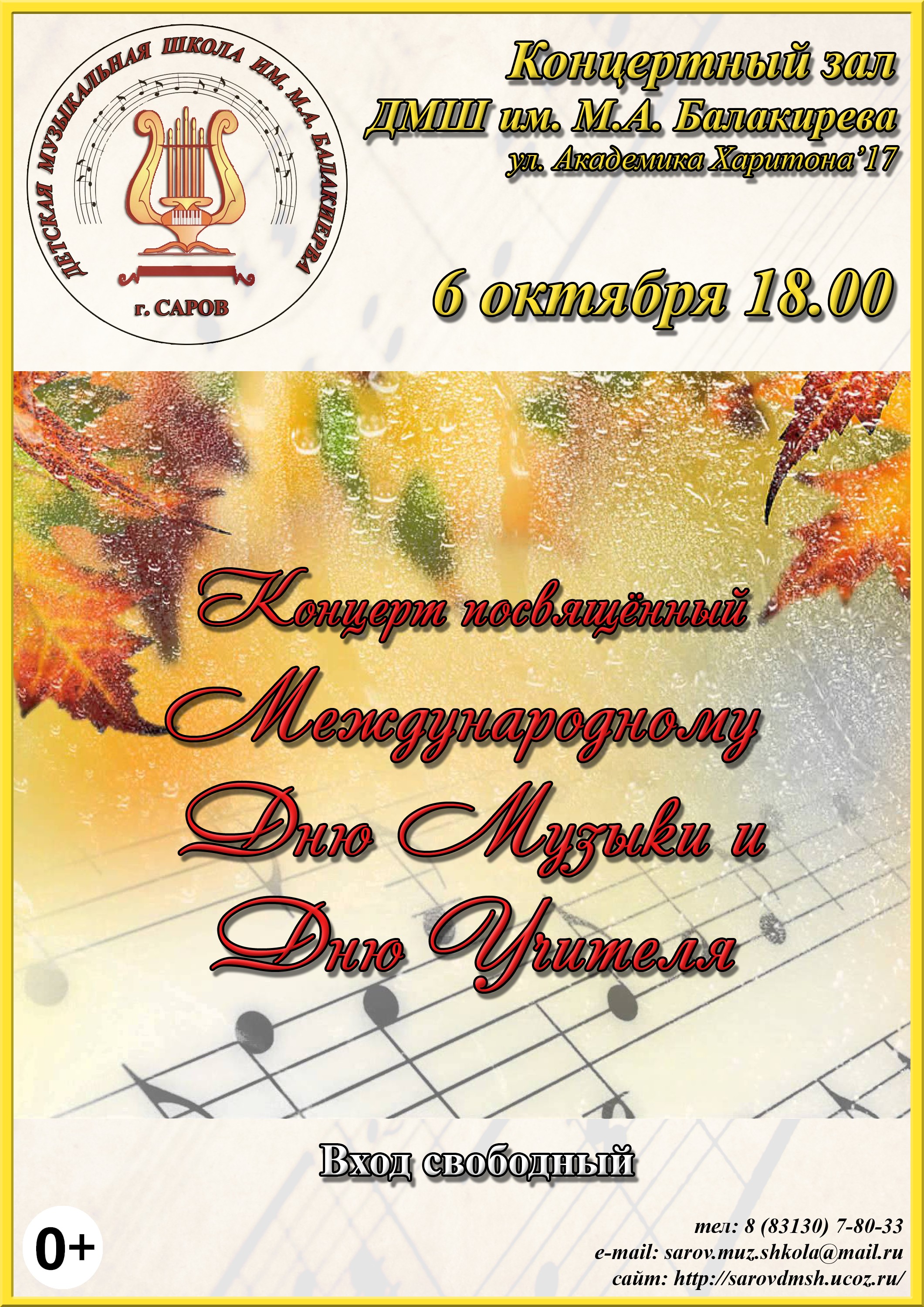 6 октября Детская музыкальна школа им. М.А.Балакирева приглашает на концерт, посвящённый Международному Дню музыки и Дню учителя.