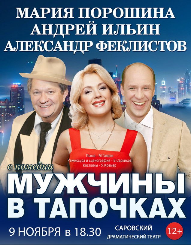Гастрольный спектакль состоится 9 ноября в 18:30 на сцене Саровского драматического театра. Автор пьесы — М.Гавран. В главных ролях — Мария Порошина, Андрей Ильин, Александр Феклистов.