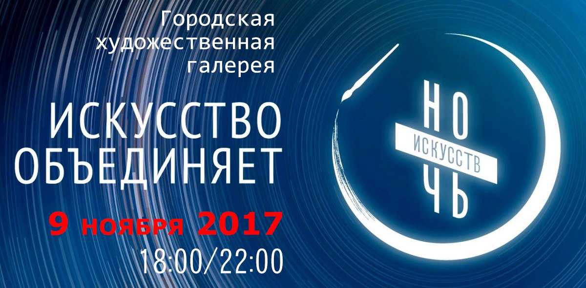 9 ноября с 18:00 до 22:00 Городская художественная галерея в пятый раз участвует во Всероссийской культурно-познавательной акции «Ночь Искусств». В этом году тема акции — «Искусство объединяет».